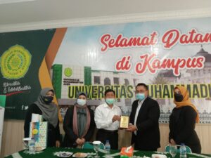 Pertemuan tersebut di hadiri oleh Rektor Unmuha yang di Wakili oleh Wakil Rektor I Dr. H. Fadhlullah, S.H., M.S, turut hadir Kepala Kantor Urusan Internasional (KUI) dan Kerjasama Unmuha Dr. Febyolla Presilawati, S.E.M.M, dari Fakultas Vokasi Unmuha hadir Kepala Bagian Akademik Marlina, S.Pd, M.Pd, Dosen Dr. Sariakin, M.Pd, Riska Nanda, S.Pd., M. Sc, Kepala Tata Usaha Ira Damayanti, S.T., M.T, Ketua Program Studi Fisioterapi Nurnarita Laila. SST. FT, Ftr Amelia Fadlina, S. Fis, dan Lisa Agustina S. Ftr.
